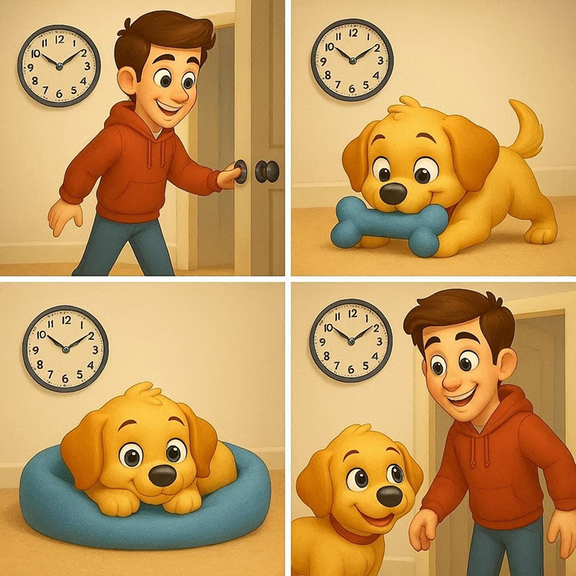- Возвращайтесь спокойно: Не устраивайте бурные приветствия — это учит щенка, что разлука не драма.