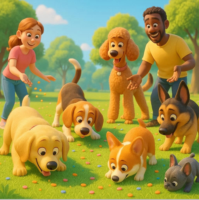 Разложите лакомства вдоль тропинки в парке или во дворе, создавая "запаховый след". Начните с короткого расстояния, постепенно удлиняя его.