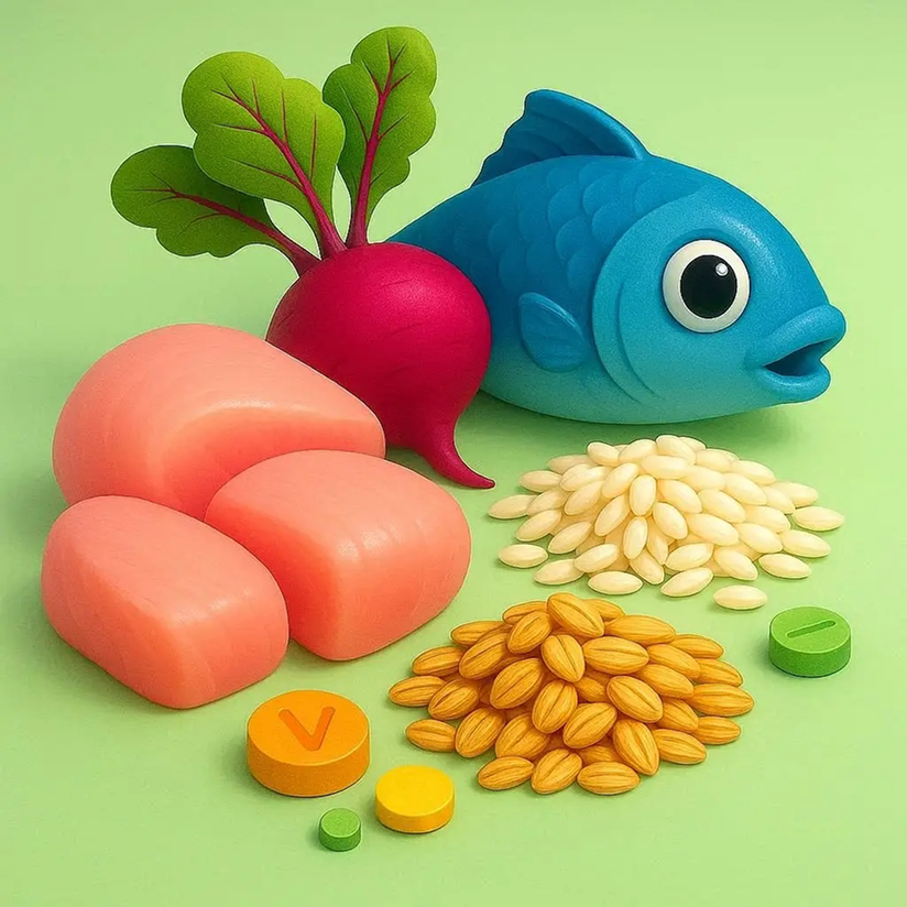 Рыба, овощи, таурин |