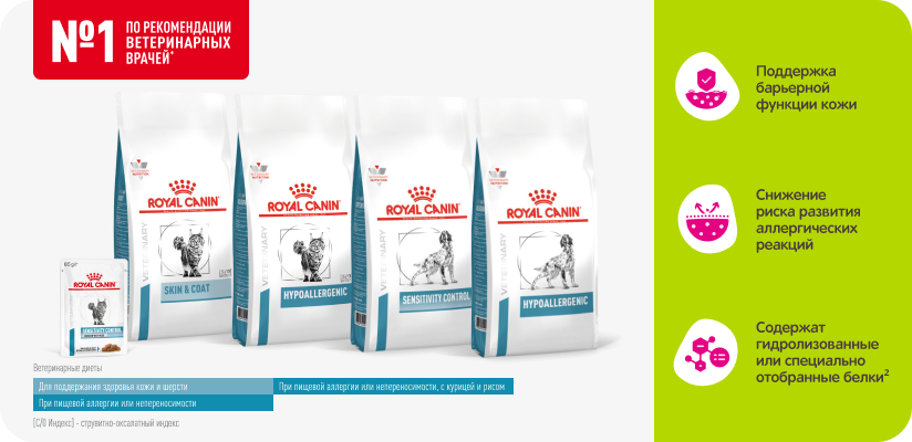 ВЕТЕРИНАРНЫЕ ДИЕТЫ ROYAL CANIN при заболеваниях кожи, аллергических реакциях, пищевой непереносимости